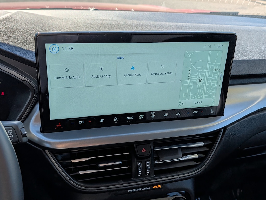"At Saxon's New Brighton Ford, we meet people where they are to make customers for life. Whether good credit, defective credit, great credit, just starting credit, or recovering credit, new or used, we work with all. So don't be shy; ask what we can do for you today! ... Don't need New, but still want Bright? New Brighton Ford's selection of pre-owned vehicles is your next stop! Our carefully selected selection of cars, trucks, SUVs, and more, is the panacea for picky shoppers. Big or small, you'll find it all. Call 651-633-9010 or stop into New Brighton Ford, today! ... There has been a Saxon selling cars since 1936. When we say we make customers for life--we mean it! From our professional and friendly staff to our long list of benefits and ' 'Saxon Solution Rewards' '--including a FULL tank with vehicle purchase, 1st oil change on us, and 15% back on every dollar spent with us while you own your vehicle towards your next one--, there is always a reason to keep coming back. Find out for yourself at New Brighton Ford, today! Just minutes from anywhere in the Twin Cities!" Check out the rest of the great features on this car. Equipment Group 700A, 2.5L iVCT, 2.91 Axle Ratio, 4-Wheel Disc Brakes, 6 Speakers, ABS brakes, Air Conditioning, Alloy wheels, AM/FM radio: SiriusXM, AM/FM Stereo, Auto High-beam Headlights, Automatic temperature control, Brake assist, Bumpers: body-color, Compass, Delay-off headlights, Driver door bin, Driver vanity mirror, Dual front impact airbags, Dual front side impact airbags, Electronic Stability Control, Emergency communication system: SYNC 4 911 Assist, Engine Block Heater, FordPass Connect, Four wheel independent suspension, Front anti-roll bar, Front Bucket Seats, Front Center Armrest, Front dual zone A/C, Front fog lights, Front License Plate Bracket, Front reading lights, Fully automatic headlights, Heated door mirrors, Heated front seats, Heated steering wheel, Heated Vinyl/Cloth Front Sport Contour Bucket Seats, Illuminated entry, Knee airbag, Low tire pressure warning, Navigation system: Connected Navigation, Occupant sensing airbag, Outside temperature display, Overhead airbag, Overhead console, Panic alarm, Passenger door bin, Passenger vanity mirror, Power door mirrors, Power driver seat, Power Liftgate, Power steering, Power windows, Radio data system, Rear anti-roll bar, Rear reading lights, Rear seat center armrest, Rear window defroster, Rear window wiper, Remote keyless entry, Speed control, Speed-sensing steering, Speed-Sensitive Wipers, Split folding rear seat, Spoiler, Steering wheel mounted audio controls, SYNC 4 w/Enhanced Voice Recognition, Telescoping steering wheel, Tilt steering wheel, Traction control, Trip computer, Variably intermittent wipers, and Wheels: 18" Machined-Face Magnetic Aluminum. Price includes: $1000 - Final Days Mega Bonus Cash. Exp. 01/02/2026 $1000 - Mega Bonus Cash. Exp. 01/02/2026 $7000 - Bonus Customer Cash. Exp. 01/05/2026