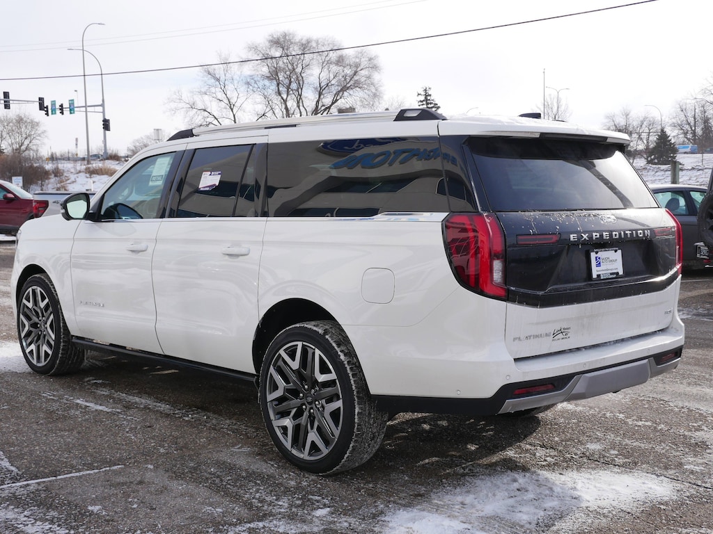 "At Saxon's New Brighton Ford, we meet people where they are to make customers for life. Whether good credit, defective credit, great credit, just starting credit, or recovering credit, new or used, we work with all. So don't be shy; ask what we can do for you today! ... Don't need New, but still want Bright? New Brighton Ford's selection of pre-owned vehicles is your next stop! Our carefully selected selection of cars, trucks, SUVs, and more, is the panacea for picky shoppers. Big or small, you'll find it all. Call 651-633-9010 or stop into New Brighton Ford, today! ... There has been a Saxon selling cars since 1936. When we say we make customers for life--we mean it! From our professional and friendly staff to our long list of benefits and ' 'Saxon Solution Rewards' '--including a FULL tank with vehicle purchase, 1st oil change on us, and 15% back on every dollar spent with us while you own your vehicle towards your next one--, there is always a reason to keep coming back. Find out for yourself at New Brighton Ford, today! Just minutes from anywhere in the Twin Cities!" Check out the rest of the great features on this car. Driver's Package (Continuous Control Damping Suspension, Radio: B&O Unleashed Sound System by Bang & Olufsen, and SiriusXM w/360L), Equipment Group 600A Standard Package (2nd Row Power-Folding Captain's Chairs), Platinum Ultimate Interior Package, Platinum Ultimate Package (Black Headlamp Bezel w/Satin Trim Applique, BlueCruise Equipped (1-Year Plan), Carbon Black Front Bumper w/Lit Grille Bar, Engine Sound Enhancer, Front Door Scuff Plates w/Met Insert & Bright Rear, High Flow Exhaust System, Multicontour Active Motion Lthr Frnt Captains Chairs, Polished Stainless Steel Beltline Molding, Rear Seat Radio Controls, Rear Side Windows Laminated Glass, Satin Aluminum Expedition Lettering On Side & Hood, Satin Aluminum Platinum Badge On Tailgate, and Signature Grille Lighting), 10 Speakers, 3.73 Axle Ratio, 3rd row seats: split-bench, 4-Wheel Disc Brakes, ABS brakes, Adjustable pedals, Air Conditioning, Alloy wheels, AM/FM radio: SiriusXM with 360L, Apple CarPlay/Android Auto, Auto High-beam Headlights, Auto-dimming door mirrors, Auto-dimming Rear-View mirror, Automatic temperature control, Brake assist, Bumpers: body-color, Compass, Delay-off headlights, Driver door bin, Driver vanity mirror, Dual front impact airbags, Dual front side impact airbags, Electronic Stability Control, Emergency communication system: 911 Assist, Exterior Parking Camera Rear, Floor Liners, Front & Second Rows, Four wheel independent suspension, Front anti-roll bar, Front Bucket Seats, Front Center Armrest, Front dual zone A/C, Front License Plate Bracket, Front reading lights, Fully automatic headlights, Garage door transmitter, Genuine wood dashboard insert, Genuine wood door panel insert, Heated & Ventilated Leather Front Captain's Chairs, Heated door mirrors, Heated front seats, Heated rear seats, Heated steering wheel, Illuminated entry, Leather steering wheel, Low tire pressure warning, Memory seat, Navigation System, Occupant sensing airbag, Outside temperature display, Overhead airbag, Over