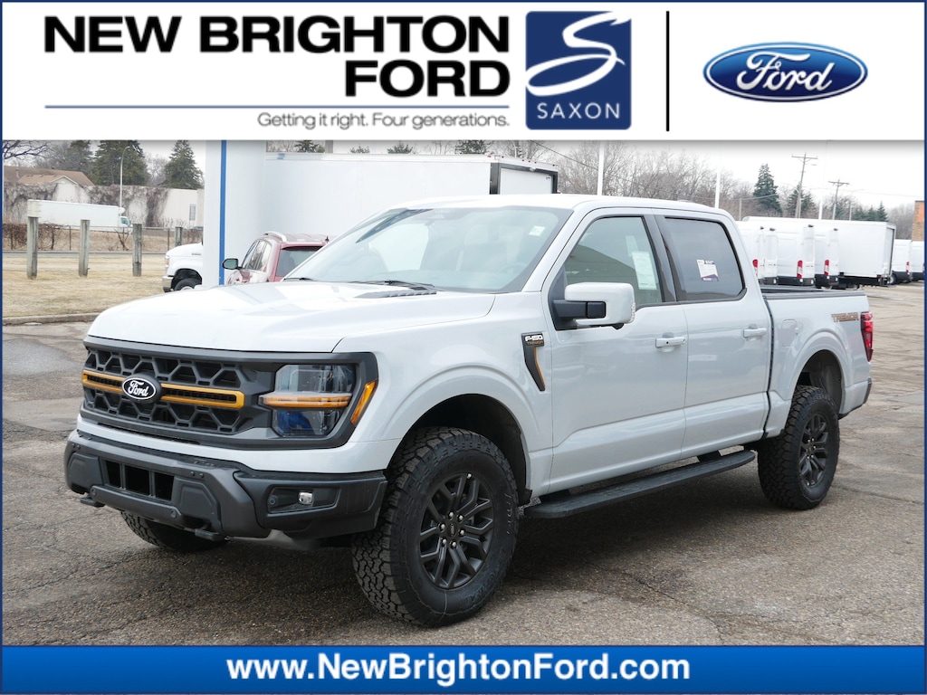 "At Saxon's New Brighton Ford, we meet people where they are to make customers for life. Whether good credit, defective credit, great credit, just starting credit, or recovering credit, new or used, we work with all. So don't be shy; ask what we can do for you today! ... Don't need New, but still want Bright? New Brighton Ford's selection of pre-owned vehicles is your next stop! Our carefully selected selection of cars, trucks, SUVs, and more, is the panacea for picky shoppers. Big or small, you'll find it all. Call 651-633-9010 or stop into New Brighton Ford, today! ... There has been a Saxon selling cars since 1936. When we say we make customers for life--we mean it! From our professional and friendly staff to our long list of benefits and ' 'Saxon Solution Rewards' '--including a FULL tank with vehicle purchase, 1st oil change on us, and 15% back on every dollar spent with us while you own your vehicle towards your next one--, there is always a reason to keep coming back. Find out for yourself at New Brighton Ford, today! Just minutes from anywhere in the Twin Cities!" Check out the rest of the great features on this car. Bed Utility Package (4 Pickup Box Tie-Down Plates, LED Box Lighting, and Power Tailgate), Equipment Group 402A High (2nd Row Heated Seats, Ambient Lighting, Auto-Dimming Rear-View Mirror, Front Axle w/Torsen Differential, Heads-Up Display, Heated Steering Wheel, LED Taillamps, Media Bin Door, Modular Front Bumper & Carbon Black Rear Bumper, Power Glass Heated Sideview Mirrors, Power-Adjustable Pedals w/Memory, Premium Wrapped Steering Wheel, Radio: B&O Unleashed Sound System by Bang & Olufsen, Rain-Sensing Wipers, Two-Speed Automatic AWD w/Mechanical Locking 4WD, Unique Tremor Leather-Trimmed Bucket Seats, and Universal Garage Door Opener), Mobile Office Package (Console Worksurface, Partitioned Lockable Rear Storage, and Wireless Charging), Tow/Haul Package (Integrated Trailer Brake Controller), GVWR: 7,100 lbs Payload Package, 4WD, 4-Wheel Disc Brakes, 8 Speakers, ABS brakes, Adjustable pedals, Air Conditioning, Alloy wheels, AM/FM radio: SiriusXM with 360L, Auto High-beam Headlights, Auto-dimming door mirrors, Auto-dimming Rear-View mirror, Automatic temperature control, Brake assist, Bumpers: body-color, Compass, Delay-off headlights, Driver door bin, Driver vanity mirror, Dual front impact airbags, Dual front side impact airbags, Electronic Locking w/3.73 Axle Ratio, Electronic Stability Control, Emergency communication system: SYNC 4 911 Assist, Front anti-roll bar, Front Bucket Seats, Front Center Armrest, Front dual zone A/C, Front fog lights, Front License Plate Bracket, Front reading lights, Front wheel independent suspension, Fully automatic headlights, Heated door mirrors, Heated front seats, Illuminated entry, Internet access capable: FordPass Connect 5G, Low tire pressure warning, Navigation system: Connected Navigation, Occupant sensing airbag, Outside temperature display, Overhead airbag, Overhead conso Price includes: $1000 - Retail Bonus Cash. Exp. 04/30/2026 $2000 - Retail Customer Cash. Exp. 04/30/2026 Price includes $350 of de