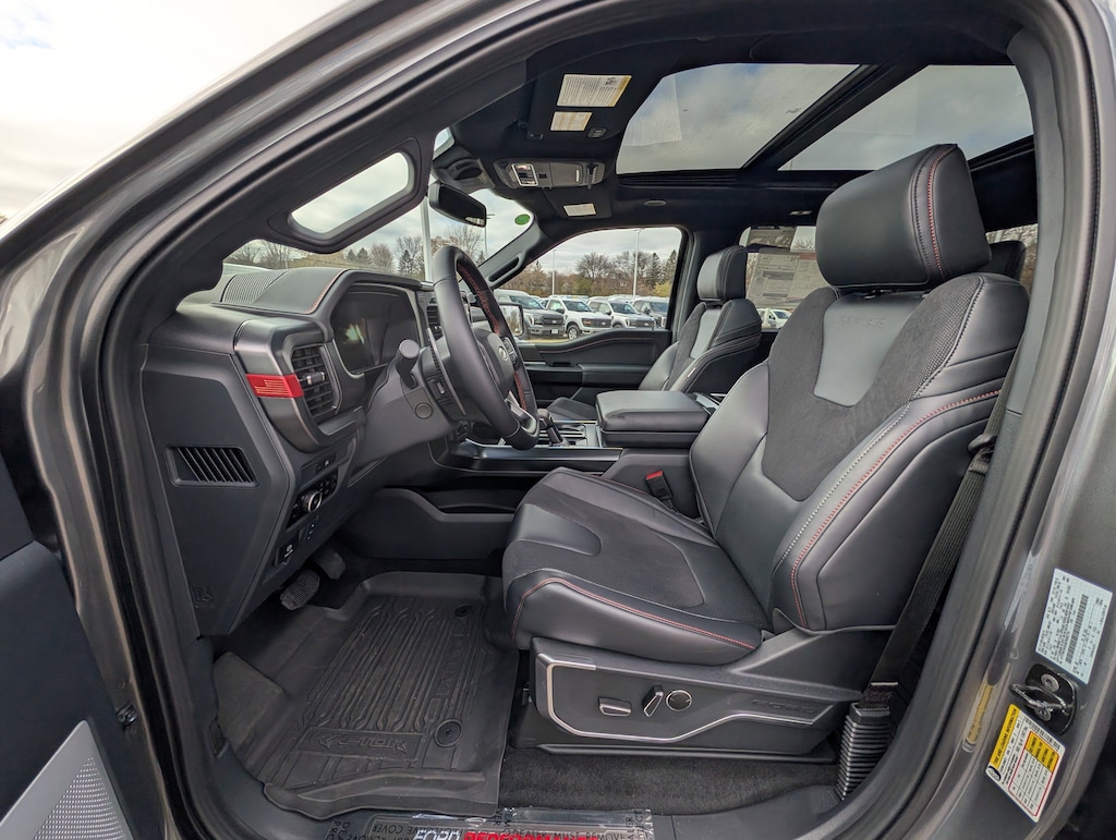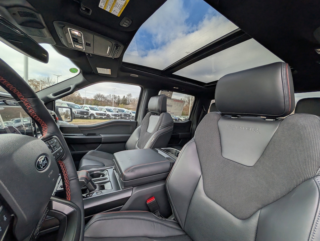 "At Saxon's New Brighton Ford, we meet people where they are to make customers for life. Whether good credit, defective credit, great credit, just starting credit, or recovering credit, new or used, we work with all. So don't be shy; ask what we can do for you today! ... Don't need New, but still want Bright? New Brighton Ford's selection of pre-owned vehicles is your next stop! Our carefully selected selection of cars, trucks, SUVs, and more, is the panacea for picky shoppers. Big or small, you'll find it all. Call 651-633-9010 or stop into New Brighton Ford, today! ... There has been a Saxon selling cars since 1936. When we say we make customers for life--we mean it! From our professional and friendly staff to our long list of benefits and ' 'Saxon Solution Rewards' '--including a FULL tank with vehicle purchase, 1st oil change on us, and 15% back on every dollar spent with us while you own your vehicle towards your next one--, there is always a reason to keep coming back. Find out for yourself at New Brighton Ford, today! Just minutes from anywhere in the Twin Cities!" Check out the rest of the great features on this car. Equipment Group 802A Raptor 37 (Carbon Fiber Interior Appliques, Dual Valve Shocks, Modular Front Bumper, RECARO Alcantara Suede Front Seats, and Wheels: Raptor 37 Unique 17" Cast Aluminum), 4WD, 14 Speakers, 17" Cast Aluminum Wheels, 4-Wheel Disc Brakes, ABS brakes, Adjustable pedals, Air Conditioning, Alloy wheels, AM/FM radio: SiriusXM with 360L, Auto High-beam Headlights, Auto tilt-away steering wheel, Auto-dimming door mirrors, Auto-dimming Rear-View mirror, Automatic temperature control, Brake assist, Bumpers: body-color, Compass, Delay-off headlights, Driver door bin, Driver vanity mirror, Dual front impact airbags, Dual front side impact airbags, Electronic Locking w/4.10 Axle Ratio, Electronic Stability Control, Emergency communication system: SYNC 4 911 Assist, Front anti-roll bar, Front Bucket Seats, Front Center Armrest, Front dual zone A/C, Front fog lights, Front reading lights, Front wheel independent suspension, Fully automatic headlights, Garage door transmitter, Heads-Up Display, Heated door mirrors, Heated front seats, Heated rear seats, Heated steering wheel, Illuminated entry, Lane Departure Warning System, Leather steering wheel, Low tire pressure warning, Memory seat, Navigation system: Connected Navigation, Occupant sensing airbag, Outside temperature display, Overhead airbag, Overhead console, Panic alarm, Passenger door bin, Passenger vanity mirror, Pedal memory, Power door mirrors, Power driver seat, Power passenger seat, Power steering, Power windows, Radio data system, Radio: B&O Unleashed Sound System by Bang & Olufsen, Rain sensing wipers, Rear reading lights, Rear step bumper, Rear window defroster, Remote keyless entry, Security system, Speed control, Speed-sensing steering, Split folding rear seat, Steering wheel memory, Steering wheel mounted audio controls, SYNC 4 w/Enhanced Voice Recognition, Tachometer, Telescoping steering wheel, Tilt steering wheel, Traction control, Trip computer, Turn signal indicator mirrors, Variably intermittent wipers, and Ventilated front seats.